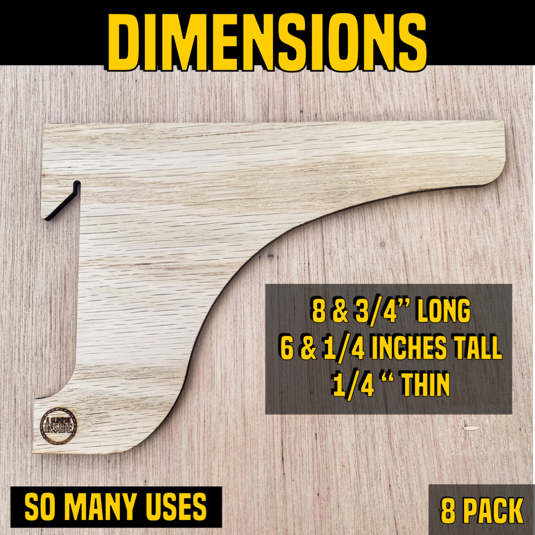 Each bracket is 8-3/4-inch long, 6-1/4-inch tall, and 1/4-inch thick.