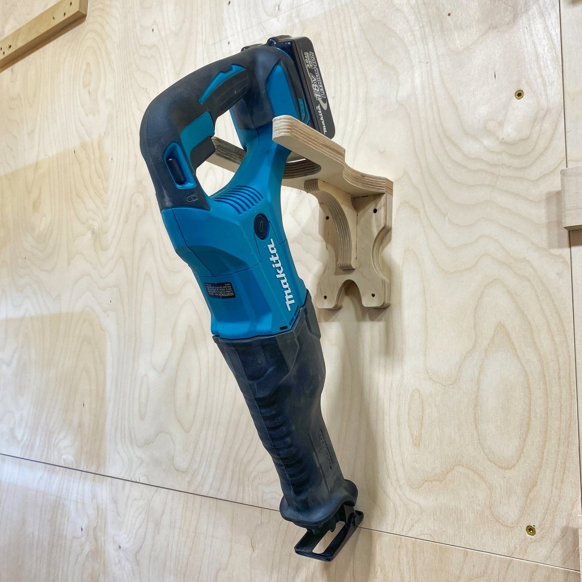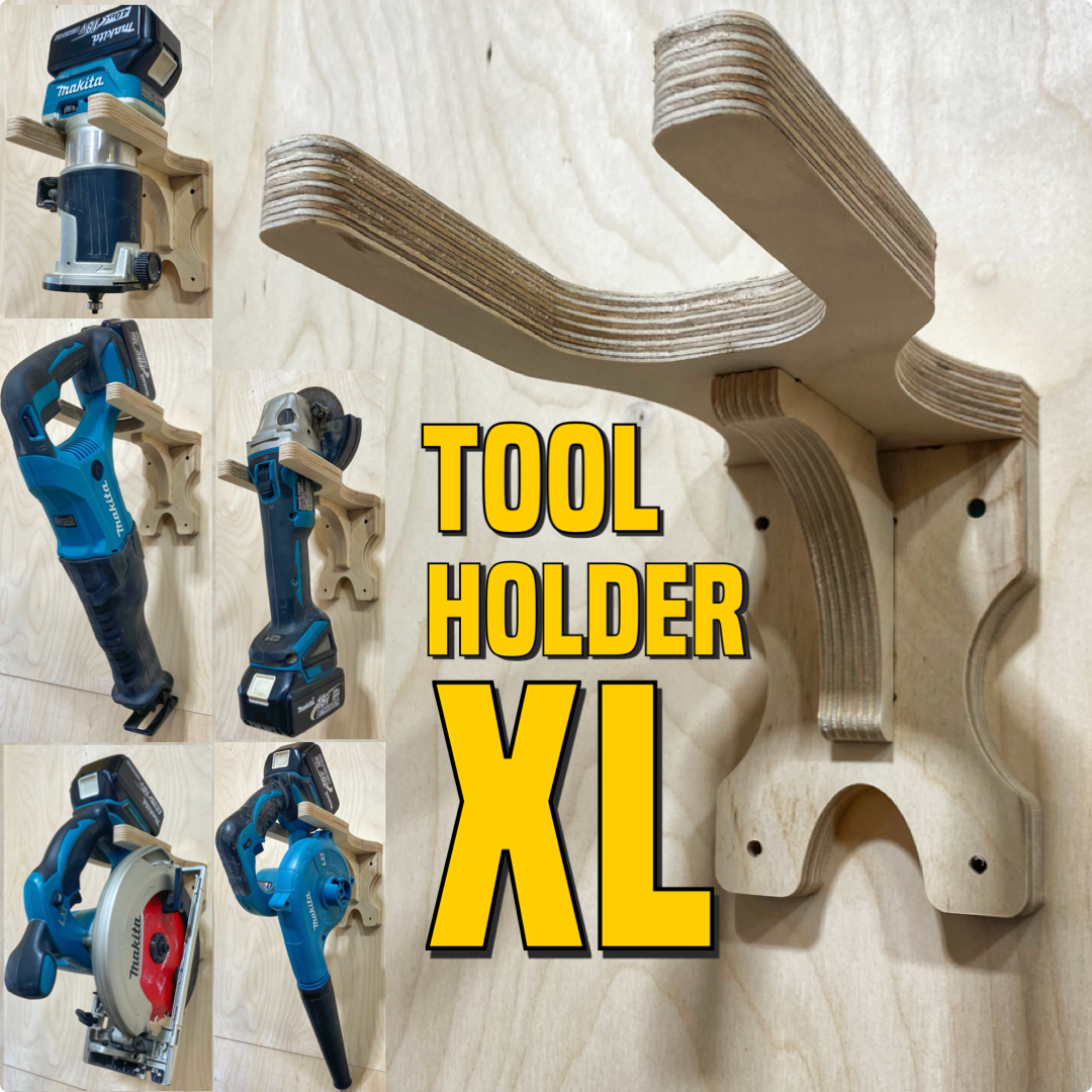 Hey, look, it's the really big version of the Birch Tool Holder! With a larger mouth opening of 2-5/8 inches, this tool holder can accommodate your larger and more obscure cordless power tools. Don't get me wrong, it can also hold drills! But that's not why this was designed. From palm routers to circular saws to angle grinders€¦and even a miniature leaf blower. These tool holders - there's one in each package - are designed to hold your larger, differently-shaped power tools.