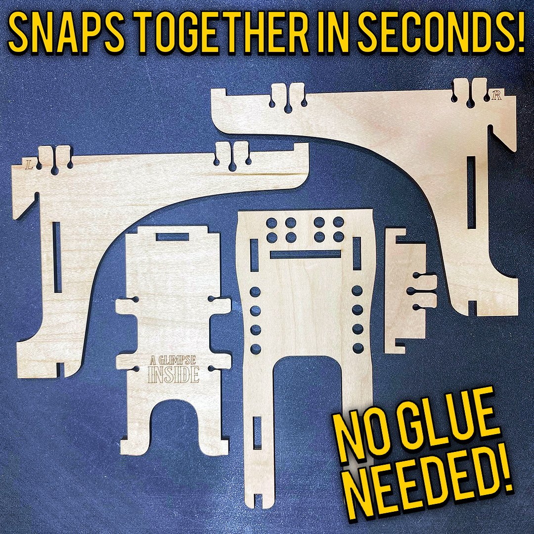 Our new Laser Cut Drill Holder is here and it's just what your workshop needs! This little lifesaver comes with a built-in French cleat to keep it in sync with all your favorite A Glimpse Inside French cleat storage solutions. It's a sturdy buddy made from quarter-inch plywood, and guess what - it snaps together in no time, with no glue necessary. (Note- price break when ordering in increments of 4)
