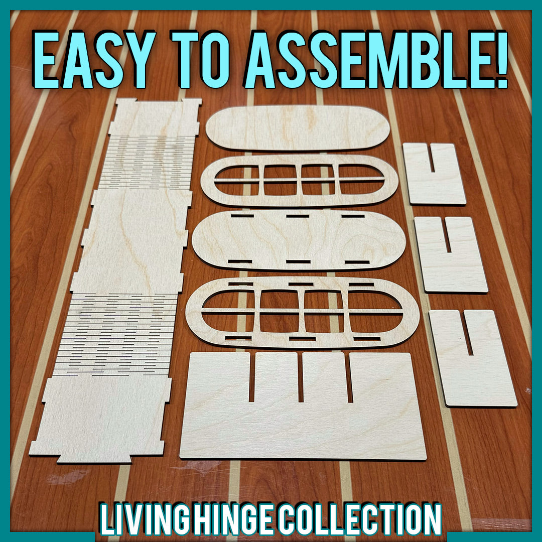 The "living hinge" is a very aesthetically appealing, super cool-looking effect made by laser cutting wood with a repeating pattern, allowing it to bend along the cuts while being durable and functional. That being said, while assembling your purchase, please take care as these pieces can be a bit fragile before fully assembled. Just use caution and take your time when putting your kit together!